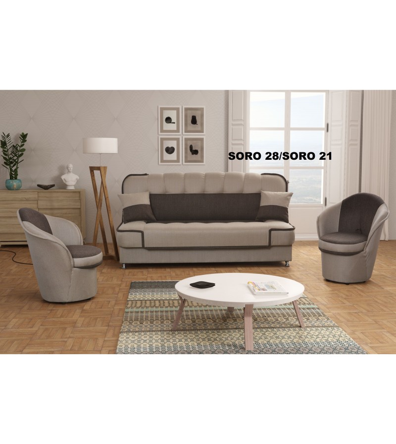 Modern ágyazható ülőgarnitúra PATRIK 3R+1+1 ágyneműtartóval , króm lábakkal, ágyneműtartó a fotelben is található.