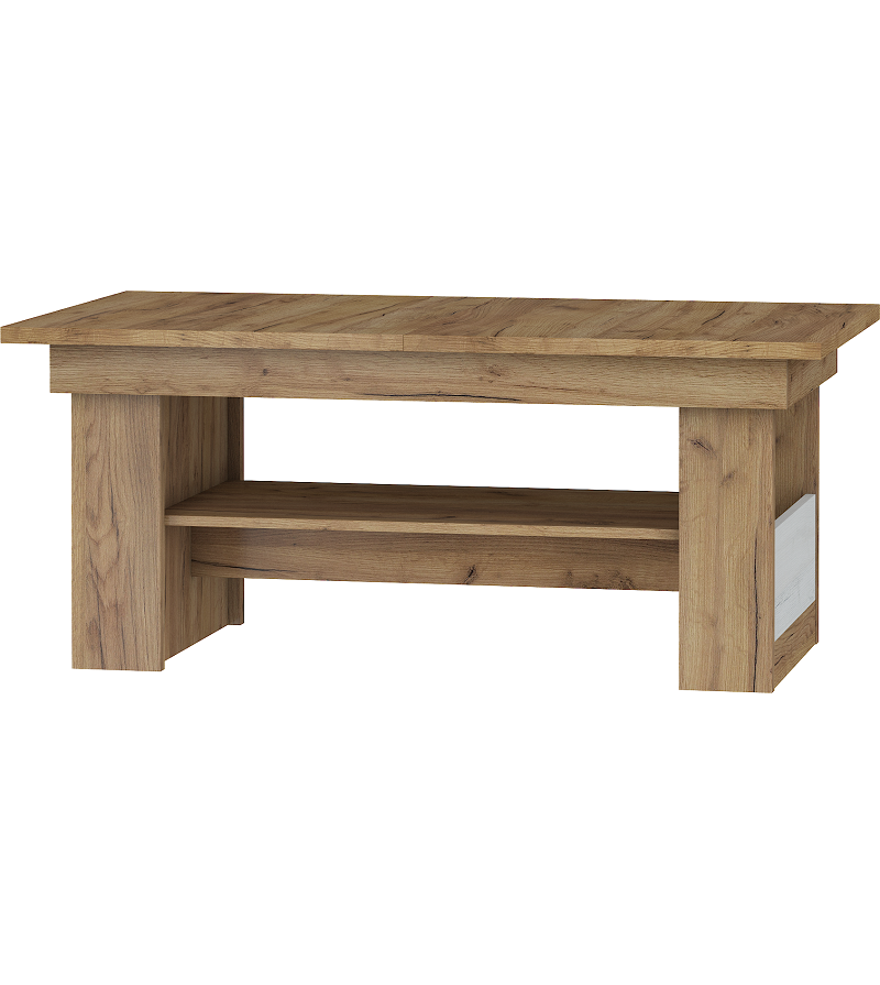 Dohányzóasztal Maximus MXS-17, praktikus polc van az asztal alatt. Ezenkívül az asztalnak van egy további betétje, így 170 cm szélesre terjed.