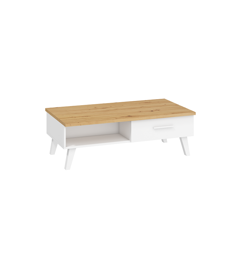 Dohányzóasztal a Nordis bútorcsaládból széles színválasztékban, fiókkal és nyitott polc résszel szerelve.