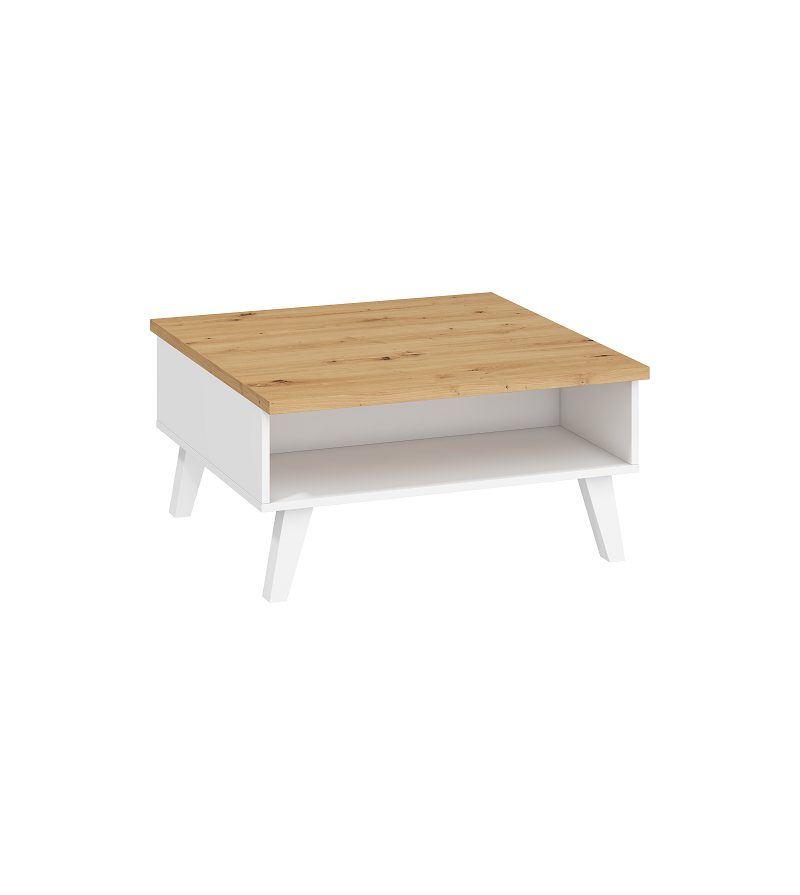 Dohányzóasztal asztal a Nordis bútorcsaládból széles színválasztékban. Nyitott polcával átlátható nyitott helyet biztosít. Bükkfa lábakon áll.