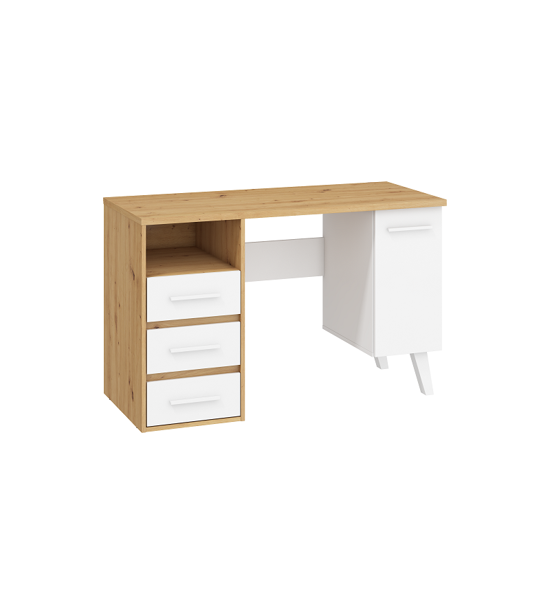 PC asztal a Nordis bútorcsaládból széles színválasztékban. Egy szekrényt, három fiókot, és egy nyitott polcot tartalmaz.