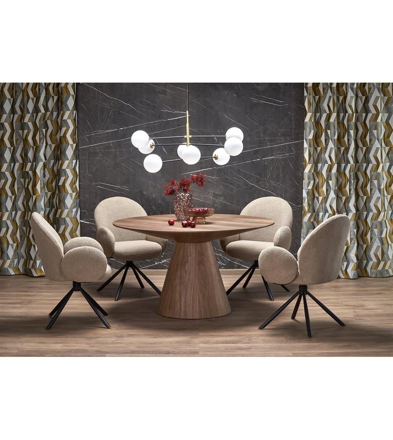 Jedálenský stôl HENDERSON v orechovej dyhe je vynikajúcou voľbou pre každého, kto oceňuje estetiku aj funkčnosť. Je mimoriadne estetický a elegantný vďaka použitej prírodnej dýhe vo farbe orecha. Dokonale zapadne do každého interiéru a dodá mu šarm a charakter. Jedinečný stôl Henderson si vás okamžite získa svojim vzhľadom. Pritiahne pozornosť a stane sa ústredným bodom miestnosti. Hubovitý tvar mu dodáva zaujímavý a originálny vzhľad, ktorý sa perfektne hodí do moderných interiérov.