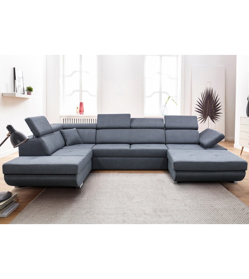 Moderná rohová sedacia súprava MAXIM v tvare "U" s funkciou rozkladania, úložným priestorom, polohovaním opierok hlavy a rúk.