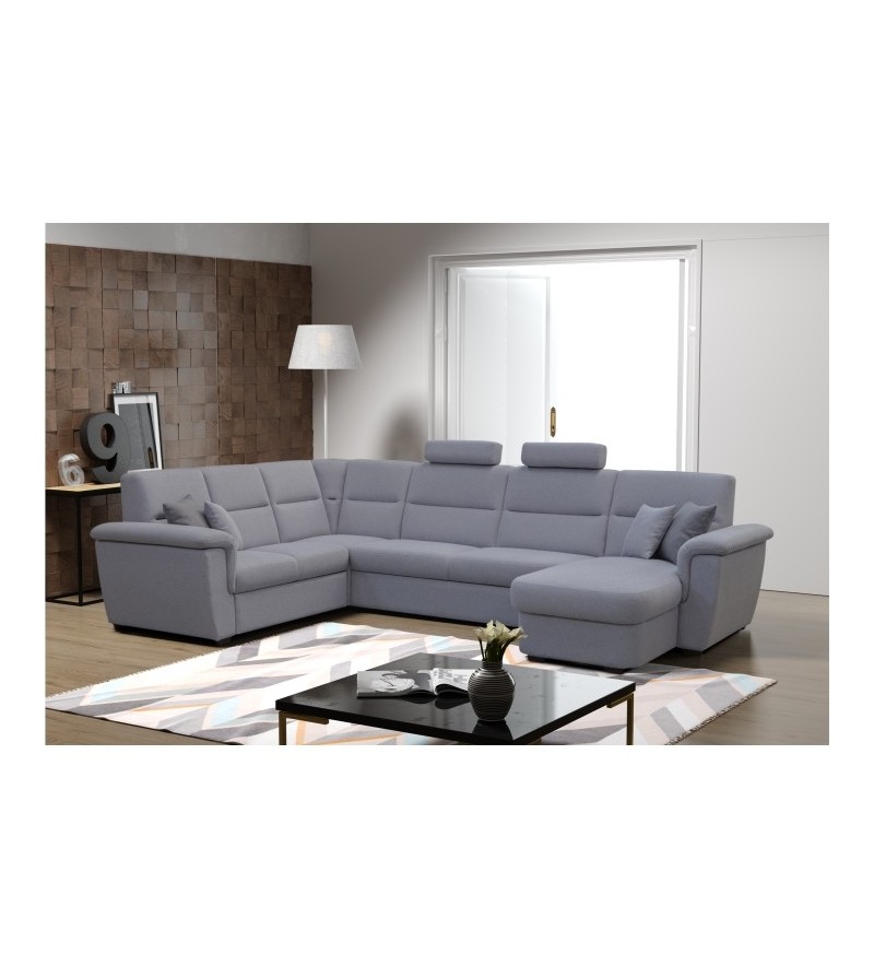 Celočalúnená luxusná sedacia súprava Born v tvare "U", s výškovo nastaviteľnými opierkami hlavy, rozťahovacia, s úložným priestorom.
