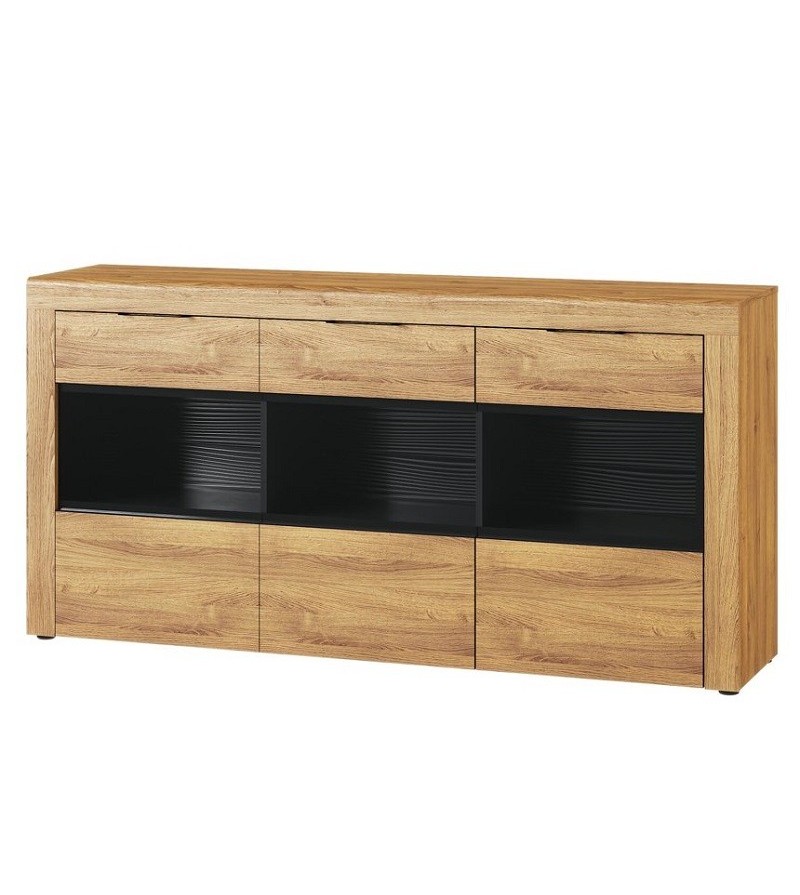 Elegantný dizajn nábytku Kama dodáva spojenie čierneho matu a odtieňa dub camargue. Nábytok Kama pôsobí luxusne, nádherná kresba dreva dokonalo vynikne v každom interiéry. Vďaka nábytku Kama si vytvoríte príjemnú a útulnú obývačku či jedáleň, vyskladáte si ju podľa svojich predstáv z jednotlivých segmentov. V ponuke je TV stolík, vitríny, polica, konferenčný stôl, jedálenský stôl, komody a skriňa.