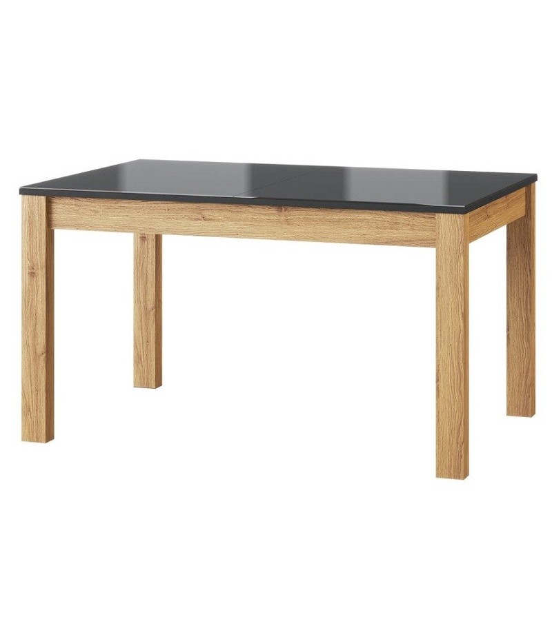 Jedálenský stôl Kama 40 je rozkladací, pomocou 2 vkladov sa dá rozložiť až na šírku 210 cm, na vrchnej doske je čierne sklo s hladkou štruktúrou.