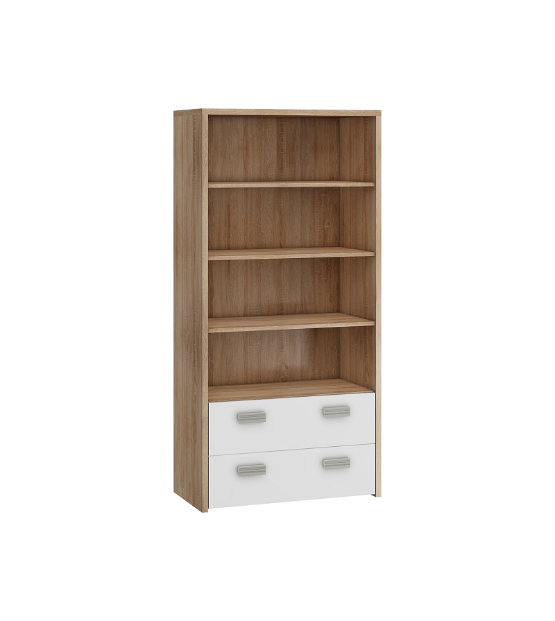Regál Kitty KIT-11 je vysoký a praktický regál vhodný do detskej izby. V hornej časti sa nachádzajú 3 široké poličky, pod ktorými sú umiestnené 2 široké zásuvky so sivými úchytmi.